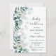 Convite de chuva de bebê moderna e elegantes verde eucalipto. Convite de chuva de bebê com folhas de eucalipto pintadas à mão e suculentas com uma borda dourada.