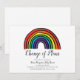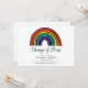 Este cartão de mudança de planos de chuva de bebê em aquarela de arco-íris de script moderno apresenta um arco-íris de esperança colorido e fofo que pode ser personalizado com suas informações, ajudando a manter seus convidados atualizados. Criado por Thisisnotme©