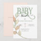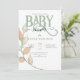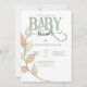 Convite de Chuva de Bebê botânico sofisticado com folhas cor de pêssego e musgo. Belo convite neutro em relação ao sexo.