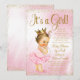 Convite de chuva de bebê princesa morena por correio com adorável bebê princesa morena usando um tutu rosa franzido e coroa dourada com um colar de pérolas em um belo fundo rosa e dourado. Este convite de chuva de bebê rosa e dourado é facilmente personalizado para o seu evento, adicionando seus detalhes no estilo de letra, cor e redação de sua escolha.