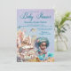 Convite de chuva de bebê de sereia morena com adorável princesa sereia africana bebê em um lindo fundo submarino. Este convite de chuva de bebê de sereia fofa é facilmente personalizado para o seu evento, basta adicionar os detalhes do evento. As palavras da Chuva de Bebê não podem ser alteradas.