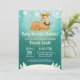 Chuva de Bebê Rena de Inverno Frio Lá Fora. Chuva de Bebê Menino ou Menina. Floco de Neve Branco e Azul. Convite de Chuva de Bebê de Férias de Inverno. Fundo Aqua. Para personalização adicional, clique no botão "Personalize" e use nossa ferramenta de design para modificar este modelo.