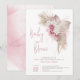 Convite Chuva de Bebê Rosa Boho Flores Rosas Aquarela
