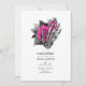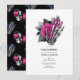 Convite de chuva de bebê gótico floral vintage caprichoso em tons de rosa-intenso e azul-marinho personalizável para os detalhes do seu evento.