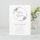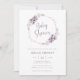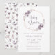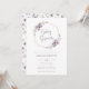 Convite de Chuva de Bebê Roxo. Suave, sonhador e romântico, este convite de chuva de bebê elegante apresenta uma bela grinalda de folhas e flores em aquarela pintada à mão em tons monocromáticos de roxo, ameixa e tons suaves de rosa com texto e caligrafia roxa combinando. O verso do convite inclui um padrão caprichoso. Encontre itens correspondentes na Coleção de Noiva Botânica Roxa Elegante.