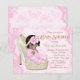 Convite Chuva de Bebê Sapato de Renda Pérola Rosa Afro-Ame