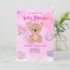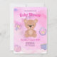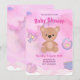 Convite Chuva de Bebê Urso Cartoon Rosa