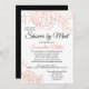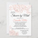 Convite de Chuveiro de Noiva em Rosa Dourado Elegante por Correio em tom rosa beije com flores delicadas e desenhadas à mão. 'Chuveiro por Correio' e o nome da noiva são escritos em tipografia cursiva e o modelo está pronto para você personalizar o convite com seus próprios detalhes. Certifique-se de editar o nome no poema que diz "É tão difícil quando estamos todos espalhados, mas adoraríamos estar ao lado dela. Já que não podemos estar lá, proponho que façamos o nosso melhor para tornar o dia de [nome] inesquecível. Por favor, envie seus cartões ou presentes pelo correio e ela sentirá nosso amor de longe, sem falta!". Navegue pela nossa loja para encontrar itens coordenados.