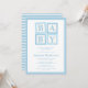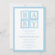 Celebre a chegada iminente do seu menino com este Convite de Chuva de Bebê Menino Blocos de Bebê Azul. Os blocos de bebê em tons de azul são elegantes e simples para qualquer casal de futuros pais!
