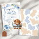 Convite Chuva de Boho Azul Vaca Highland Chamada do Bebê