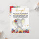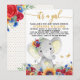 Convites de chá de bebê de girassol com adorável bebê elefante com bela rosa vermelha wildflower e fundo de girassol com borboletas. Este convite de chá de bebê de girassol é facilmente personalizado com os detalhes do seu evento.