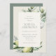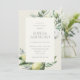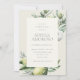 Lindo tema da natureza, os convites para chuveiros de noivas mediterrâneos contêm caracteres verdes e cinzentos macios, emoldurados por delicadas ilustrações aquáticas de verde, folhas, azeitonas e limões. Uma escolha elegante num esquema natural de cores para chuveiros de noiva, de talho italiano, de tipo exterior ou natural.