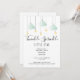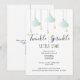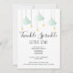 Convite de chá de bebê neutro com brilho estelar, com nuvens em verde menta e estrelas douradas em cordas em um fundo branco e seu código QR no verso. Projetado por Thisisnotme©
