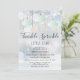 Convite de chuveiro de bebê neutro twinkle sprinkle little star com nuvens verdes menta fofas e estrelas douradas em cordas, em um fundo de geada de inverno, este convite de chuveiro de bebê neutro é perfeito para todos os pequenos que estão a caminho. Adicione os detalhes da sua celebração especial para criar o convite perfeito. Criado por Thisisnotme©