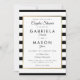 Com um fundo clássico de listras pretas e brancas, este convite elegante de chuva de casais para casamento tem uma borda de falso foil dourado emoldurando os detalhes da chuva de casais definidos em tipografia moderna e sofisticada. Criado por Thisisnotme©