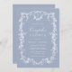 Convite de Chuva de Casal com Floral Azul Vitoriano Francês Elegante com texto personalizado no verso.