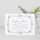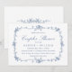 Convite de Chuva de Casal Floral Azul Vitoriano Francês elegante com texto personalizado no verso.