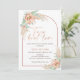 Convite de chuva de casais em estilo boêmio moderno dourado rosa falso com tema de amor taco 'bout, com arranjo de cacto florido laranja, grama pampas e um arco dourado rosa falso.