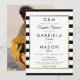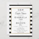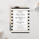 Com destaque para um fundo listrado clássico em preto e branco, este convite elegante para chá de casal de casamento tem uma borda de falso foil dourado emoldurando os detalhes do seu chá de casal em tipografia moderna e sofisticada e sua foto especial no verso. Criado por Thisisnotme©