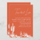 Convite de chuva de casamento de casal sobre taco com paisagem ocidental moderna em cor de pôr do sol de Verona com um deserto ocidental esbranquiçado e uma fonte de caligrafia moderna de linha única.