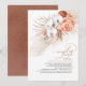Orquídeas brancas, rosas terracota, folhagens tropicais secas e grama pampas convites elegantes de chuva de casamento de aquarela