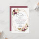 Convite de Chuva de Casamento com flores de água pintadas à mão em burgundy e rosa, acentuadas com folhagens, moldura geométrica dourada e pontos dourados.