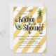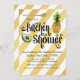 O Retro encontra o glamour moderno neste convite de chá de panela de casamento com listras diagonais douradas e uma fonte caprichosa anunciando um "Chá de Cozinha". Adornado com frutas e uma colher de pau, o texto de exemplo está pronto para ser editado com as informações específicas do seu evento. Você pode mover o texto, bem como adicionar ou remover linhas de texto conforme necessário, selecionando o botão "personalizar".