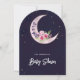 Convite Chuva de Estrelas Índigo Rosa Floral Lua Baby Show