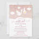 Com uma adorável cegonha carregando uma entrega muito especial, em um fundo glitter rosa dourado e rosa velho, essa adorável festa virtual do bebê, sprinkle ou convite de casal por correio é perfeito para todos os pequenos que estão a caminho. Adicione os detalhes da sua celebração em texto elegante para criar o convite perfeito. Criado por Thisisnotme©