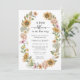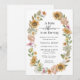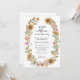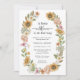 Convite Chuva de Flores Boho Baby Shower. Este convite de baby shower apresenta belas flores silvestres rosa e azul empoeirado pintadas à mão em aquarela, belos girassóis amarelos e folhagens de cor salgueiro dispostos como um lindo buquê que é perfeito para aqueles que amam a elegância boho / boêmia caprichosa. Encontre itens correspondentes na Coleção de Casamento de Girassóis Modernos.