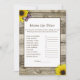 Rustico, madeira desgastada com girassóis amarelos e borboleta rosa. Tipografia de tampa de garrafa rosa e branca "Bebê" no verso que combina com o convite. Modelos criados para você. Este é um jogo de adivinhação de preço para chá de bebê.