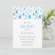 Chic boho gotas de chuva azuis caem em direção aos seus detalhes personalizados neste convite de chá de bebê fofo, sprinkle ou casal. O verso apresenta uma chuva adicional de gotas de chuva, adicionando um toque extra ao seu evento especial. Projetado por Thisisnotme©