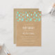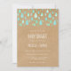 Cute gotas de cor verde menta caem em direção aos seus detalhes personalizados em um fundo rústico boho kraft, neste convite de chá de bebê neutro fofo, sprinkle ou chá de casal. O verso apresenta uma chuva adicional de gotas, adicionando um toque extra ao seu evento especial.