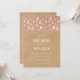 Elegantes gotas de chuva rosa bebê caem em direção aos detalhes personalizados em um fundo rústico boho kraft, neste convite de chá de bebê, sprinkle ou chá de casal. O verso apresenta uma chuva adicional de gotas, adicionando um toque extra ao seu evento especial. Criado por Thisisnotme©