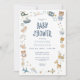 Dê as boas-vindas a um pequeno com charme e capricho. O nosso encantador convite de chá de bebê apresenta animais e brinquedos em estilo aquarela desenhados à mão e rodeando de forma divertida os detalhes do seu evento. Azuis suaves, verdes, bege, dourados e marrons criam um ambiente quente e de conto de fadas num fundo branco nítido. O verso continua a magia com um padrão encantador das mesmas ilustrações doces. Perfeito para celebrar com um toque de capricho e maravilha! Criado por Simply Farmhouse Press.