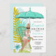 Convite de chuveiro de noiva lingerie apresenta flores tropicais azuis e verdes ovo de robin, guarda-chuva e noiva loira a ser. Disponível com cabelo loiro, castanho e ruivo e pele clara e escura.