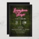 Roteiro de chuva de mel inspirado em letreiro de neon rosa sobre fundo inspirado em buxo verde com texto branco personalizado.
