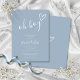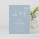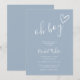 Um convite de chá de bebê minimalista moderno com um coração desenhado à mão e tipografia estilosa em um fundo azul empoeirado. Criado por Thisisnotme©
