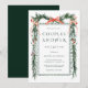 Este convite elegante para chá de bebê de casal apresenta uma grinalda de pinheiro de Natal em aquarela decorada com fitas vermelhas, frutos de azevinho, folhagens botânicas e caligrafia estilosa. Para personalização avançada deste design, clique no link "Personalizar ainda mais".