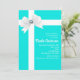Convite Chuva de Noiva Azul Teal com Laço Branco e Diamant