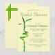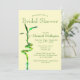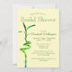 Este convite de chuva de noiva em formato vertical é definido sobre um fundo amarelo pastel. Ele apresenta um caule de bambu sortudo espiralado na frente com os detalhes da festa do modelo. O canto superior esquerdo traseiro tem caules de bambu duplos entrelaçados e folhas de bambu estão no canto inferior direito. Personalize o texto nos campos do modelo ou clique em personalizar para selecionar um estilo de letra, tamanho e cor de sua preferência.