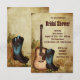 Convite de chuva de noiva de caubói rústico vintage marrom e azul com guitarra e botas. Este convite de chuva de noiva de caubói country rústico é facilmente personalizado para o seu evento com a escolha de estilo de fonte, cor e texto. Por favor, note que este design é impresso sem joias reais, laços, relevos, ou peças ou partes adicionais. Alguns gráficos Simply Sumara.