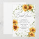 Apresentamos este convite de chuva de noiva, apresentando o charme radiante de girassóis em aquarela e videiras graciosamente adornando um fundo branco crocante. Este convite é projetado para capturar a essência do seu dia especial com sua elegância casual e vibrantes motivos botânicos.