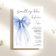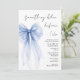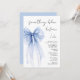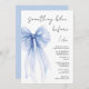 Convite de chá de noiva elegante com uma aquarela de um grande laço azul coquete e "something blue before i do" em uma fonte chic.