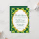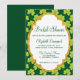Convite de chuva de noiva com tema do Dia de São Patrício para o irlandês em você. Projetado com um padrão repetitivo fofo com trevos verde-oliva em um fundo verde escuro. Uma moldura fancy em folha de ouro falso sobreposta com seus detalhes dentro.