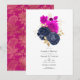 Convite de Chuva de Noiva de Casais Florais Magenta Viva Tendência do Ano 2023 com Acentos de Azul Naval.
