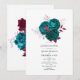 Convite de chuva de noiva de casais florais turquesa - azul e borgonha na moda.