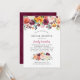 Um convite de chuva de noiva fresco e vibrante com aglomerados florais em aquarela no topo e na parte inferior em tons ricos de outono de borgonha, coral, laranja e rosa com folhagem suave em um fundo branco limpo. O layout aberto mantém o design arejado enquanto a paleta sazonal define um tom quente e convidativo. Todo o texto é totalmente editável para a celebração da sua festa de casamento.