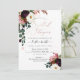 Chuva de Noiva Rústico Florido com rosas em aquarela burgundy e blush, Protea Rei e Anêmona branca, adornado com folhagem de Eucalipto para completar este arranjo de bouquet. Acentuado com um coração e fonte de caligrafia elegante em dourado rosa falso Chuva de Noiva.