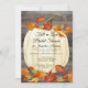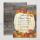 "Chuva de Noiva em Aquarela Rústica de Folha de Outono e Abóbora." O rico fundo de madeira de celeiro escuro destaca a abóbora branca e as folhas escuras e ricas de outono em tons de vermelho, laranja, ocrato e marrom. Design rústico e elegante, perfeito para uma Chuva de Noiva em um dia de outono fresco! A arte foi pintada à mão em aquarela pela artista licenciada internacionalmente, Audrey Jeanne Roberts. Conjunto completo disponível para coordenar. Direitos autorais.